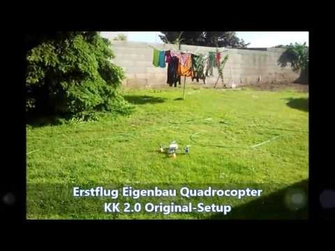 Anbei die ersten "Flugversuche" mit dem KK 2.0 Board. Firmware 1.2 mit Originaleinstellungen und aktiviertem Self Leveling.